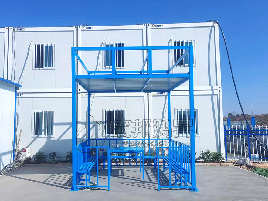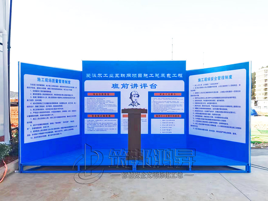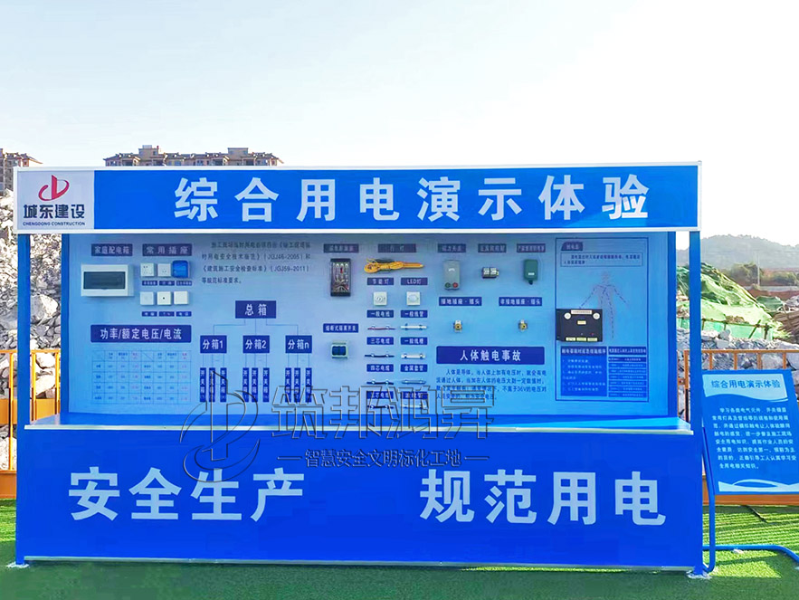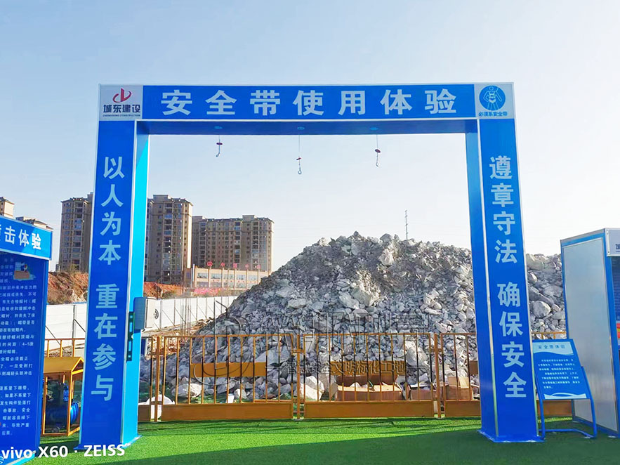 此次合作的安全教育培訓體驗區設備包括了安全鞋/帽撞擊體驗,安全帶使用體驗、安全防護用品展示體驗、綜合用電演示體驗、鋼絲繩使用體驗、班前講評臺,平衡木體驗、滅火器演示體驗等。另還有工地茶水亭等標化產品。