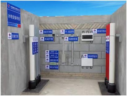 工藝展示:線盒定位彈線,機械開槽,開關、插座盒預埋,線管安裝,線槽一次細石砼填塞,線槽掛鋼絲網,線槽二次細石砼填塞,強電箱預埋安裝,多媒體箱預埋安裝,等電位端子箱安裝,防水套管,防水封堵,給水立管(三種管徑),排水立管,消防立管等工藝。