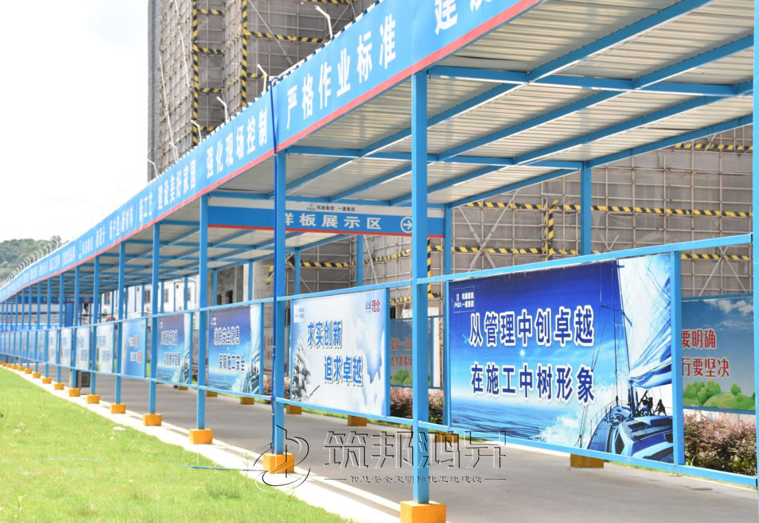 湖南筑邦鴻昇建筑科技有限公司是一家專業從事建筑工程安全文明施工標準化產品研發、生產、銷售和服務的綜合型企業,為客戶提供整體設計、產品制作、現場施工、專人跟進等一站式解決方案和服務。目前公司擁有數萬平方米的生產基地,全配置現代化生產設備,匯聚了機械設計、鋼結構設計、工藝設計、3D設計、建筑設計等專業人才,以及高素質技術工人100余名。標化產品均選取國標鋼材,用料足,采用高溫烤漆工藝,色彩鮮艷不易褪色;安裝拆卸便捷,省時省力,且多數可重復使用。