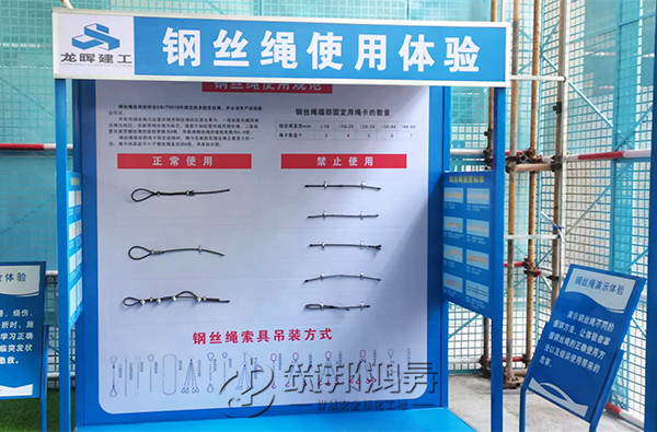 此次合作的工地安全體驗館建設(shè)包括了綜合用電體驗、安全帶使用體驗、鋼絲繩使用體驗、班前講評臺、安全急救培訓(xùn)體驗、洞口墜落體驗、安全帽撞擊體驗、安全防護用品展示體驗、墻體傾倒體驗、滅火器演示體驗等。筑邦安排專車送貨到商洛工地,同時安排了專業(yè)人手迅速到工地加班加點完成安裝。