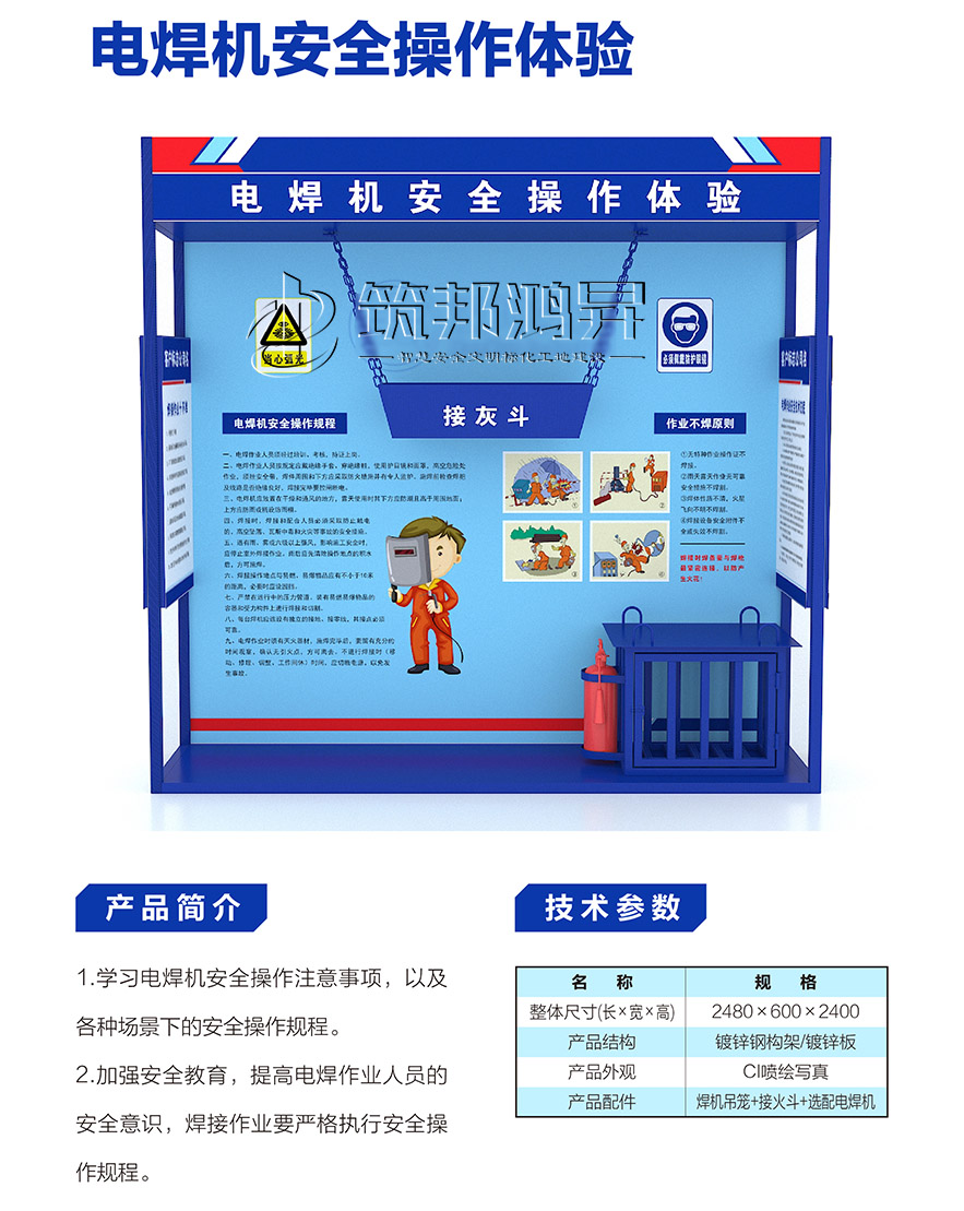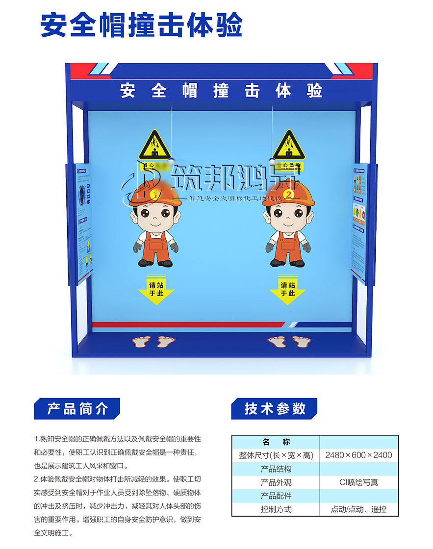 【筑邦鴻昇】實體安全體驗館采用視、聽、體驗相結合的立體式安全教育模式,實施可感受、可操作的實體化安全教育。安全體驗館通過模擬建筑施工現場可能發生的各種安全事故,讓體驗者親身參與、體驗,寓教于樂,體驗不安全操作行為帶來的危害,讓每個員工都有實際操作的動手能力,真正達到“以人為本預防為主”為目的的場館。通過體驗,讓體驗者熟練掌握安全操作規程以及緊急情況的安全對策,達到提升職業技能、提高安全意識的目的。實體體驗館有(常規款+鈑金款+經濟款),下面展示的是經濟款。