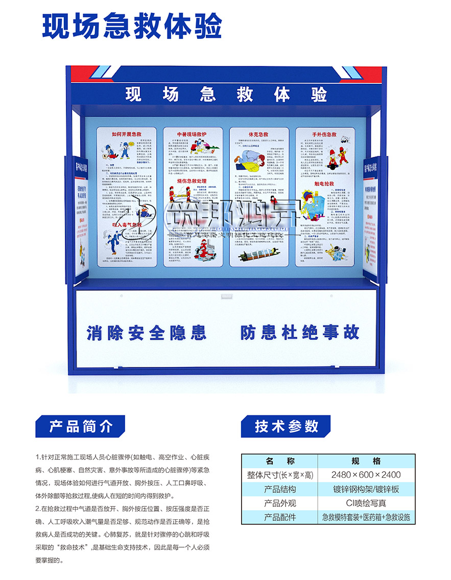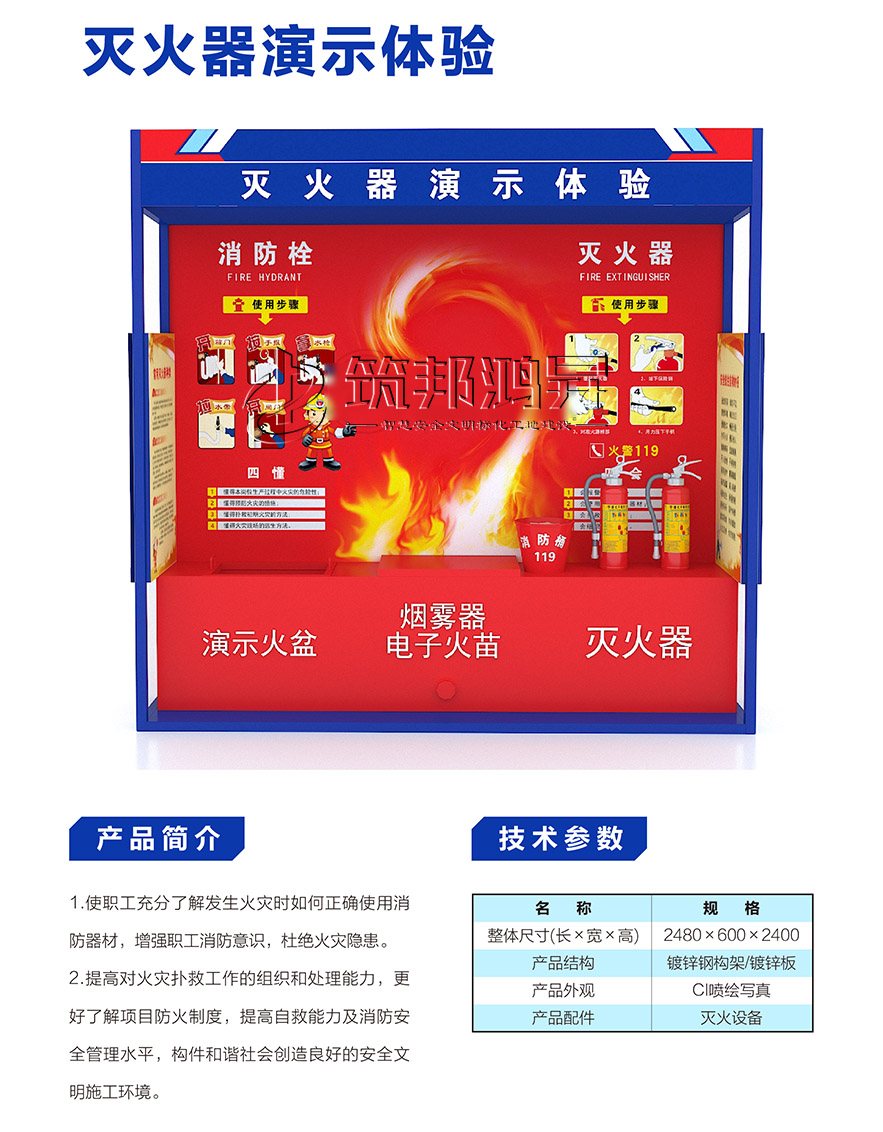 1.筑邦鴻昇為客戶提供實體安全體驗館策劃布局設計、制作、施工安裝一站式服務,客戶只要等待驗收即可,驗收后專人跟蹤維護。